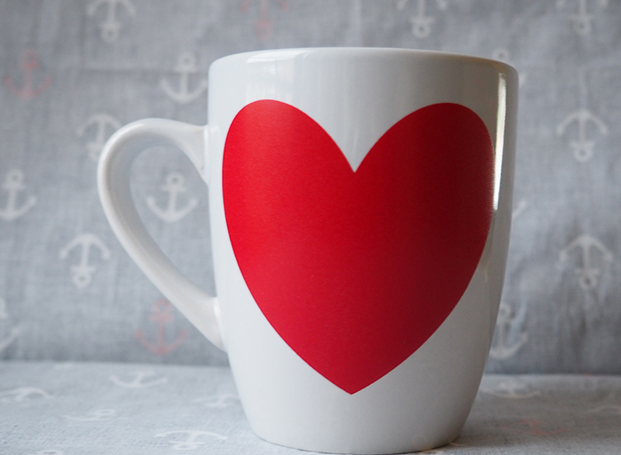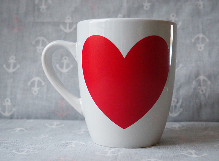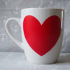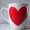 Taza con cuerpo blanco y detalle de corazón rojo en pizarra.
