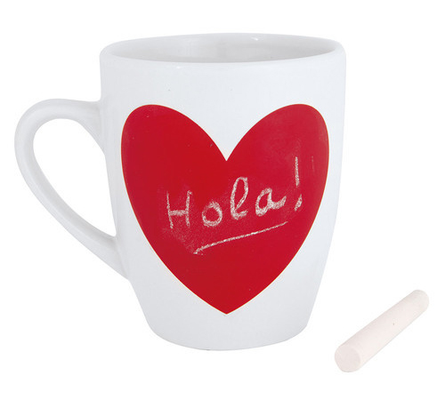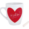 Taza de cerámica de 350ml de capacidad con diseño de corazón para dejar un mensaje a una persona especial.